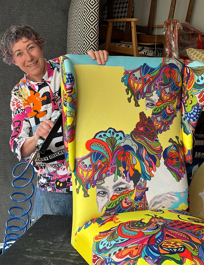 Armastus retro mööbli vastu sai alguse uue kodu rajamisega ja viis mööbli restaureerimise õppimiseni. Retromustritest inspireerituna tekkis ühel hetkel soov pehmet mööblit värvilisemate ja omanäolisemate kangastega pealistada ja see viis maalimise katsetusteni. Kangaste loomine ei ole aga minu maalimise eesmärk omaette – naudin nüüdseks seda ka kui puhkust argimuredest eemaldumiseks ja hinge kosutust. See on nagu meditatsioon, kus värvide ja mustrite kompositsioonid saavutavad tasakaalu ja loovad sisemise rahulolu ka nende loojas. Loodan, et sellest rahuldusest tulenev hea energia jõuab läbi lõuendi ka vaatajani maali uues kodus.