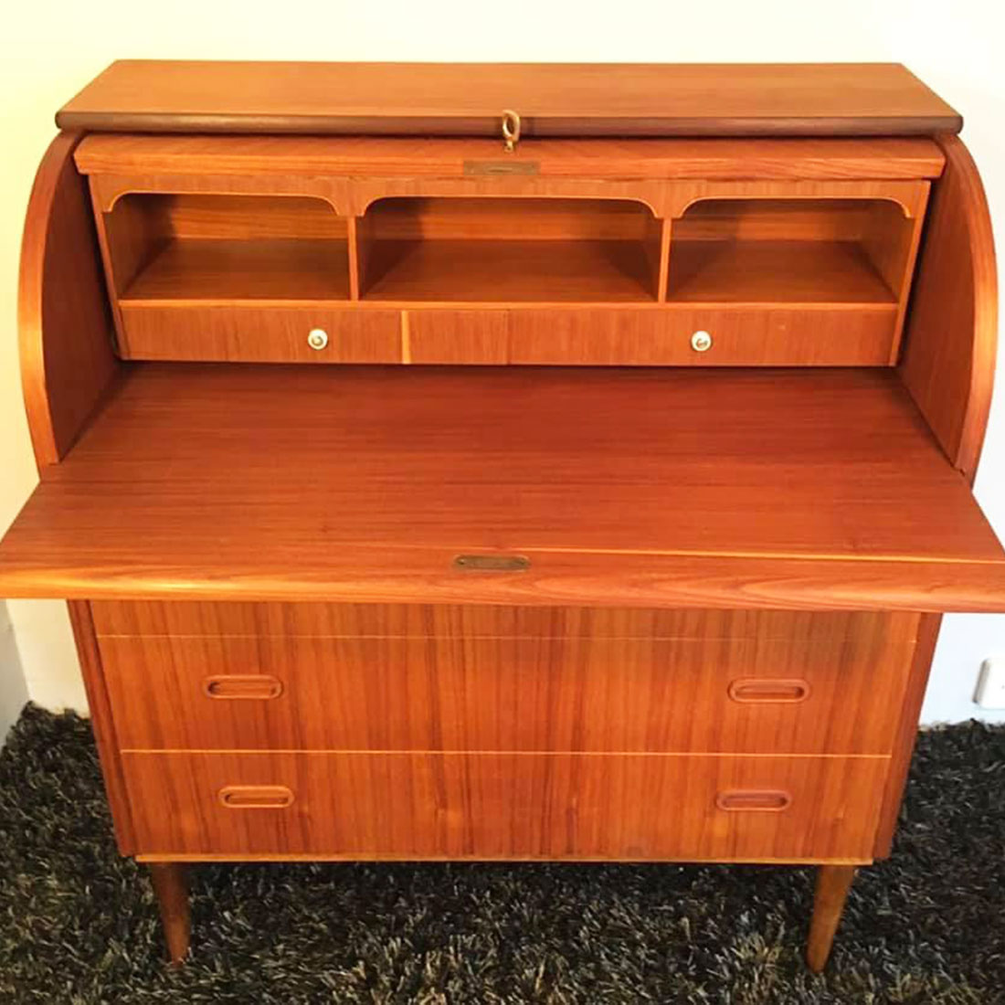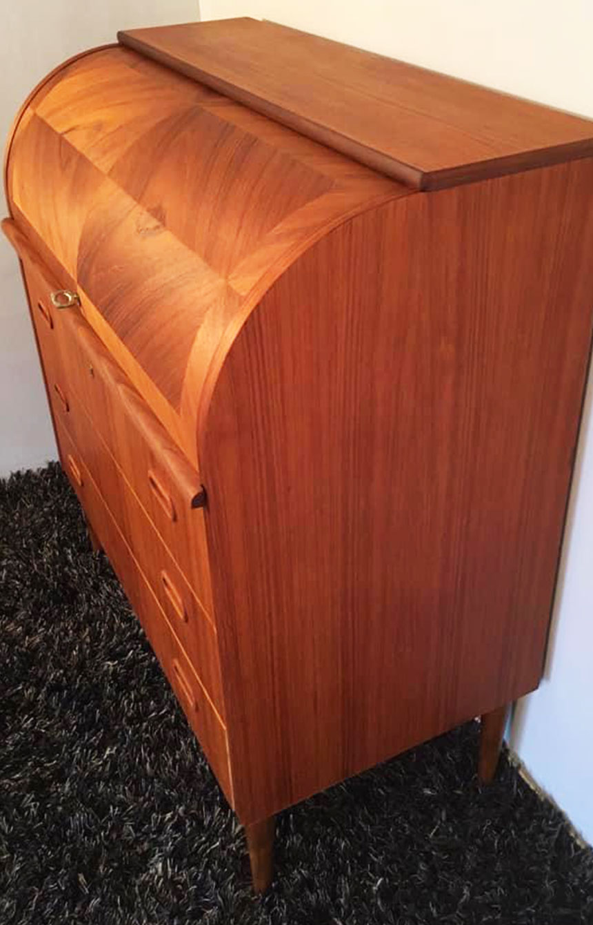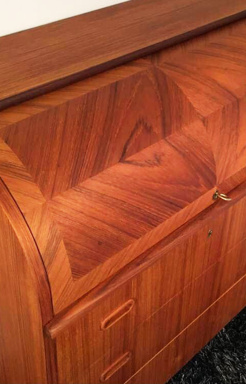 Tiigipuust sekretärkapp eelmise sajandi keskpaigast Kauni tiigipuu spooni sära sai taastatud vana viimistluse täieliku eemaldamise ja õlivahatades uuesti viimistlemisega.