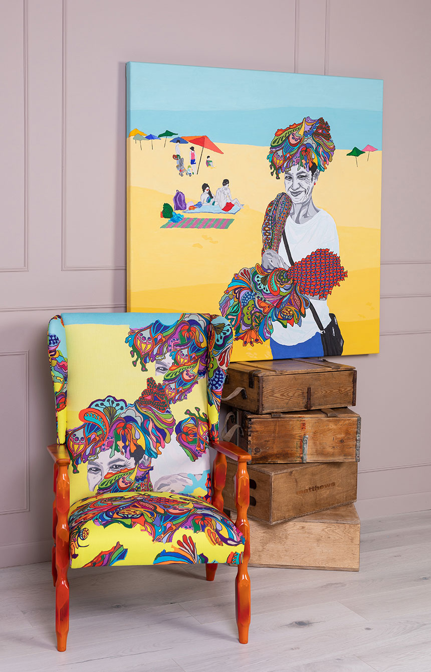 Tugitooli kangas on disainitud ja digiprinditud maali järgi.