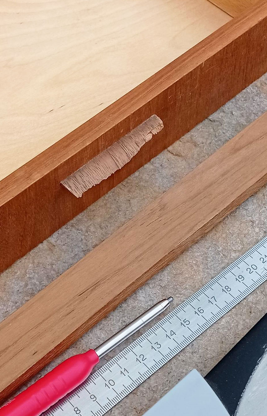 Üks tore tiigipuust retro konsoolkapp Kuna mõlemad käepidemed olid ära murdunud, siis tuli endal uued teha.